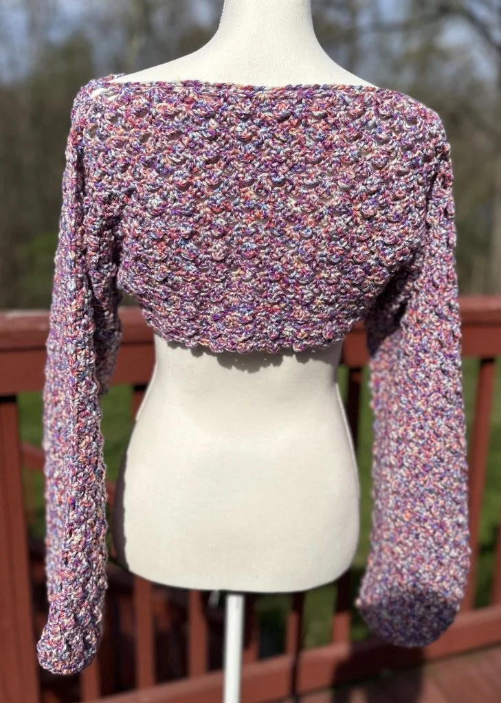 Named for the flickering glow of a Highland cauldron’s flame, this double-sided cowl brews together shades of charcoal black, spectral purple, and potion-green. Hand-crocheted for warmth and whimsy, its playful fringe sways like dancing firelight while soft textures catch the glow: equal parts comfort and enchantment.